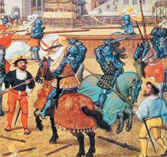 Рыцарский турнир. Миниатюра из хроник Жана Фруассара. XV век.
